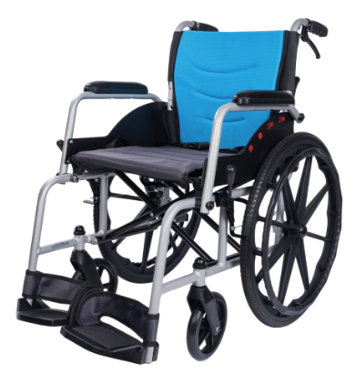 ◆固定扶手,固定靠腳,背可折鋁合金輪椅。